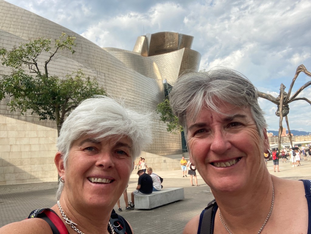 Once docked, we made our way to a safe park up just outside the city. We had heard tales that thieves target vans just off the ferry as they realise there will be valuables on board so we wanted a secure spot to visit Bilbao. We weren’t going to stay the night but it was worth paying for peace of mind. Autocaravaning Kobetamendi (P4N#17633) was perfect with a bus stop right outside. We were in the old town in no time and walked across town to the Guggenheim Museum, the reason for our stopover. Wonderful museum both inside and out.