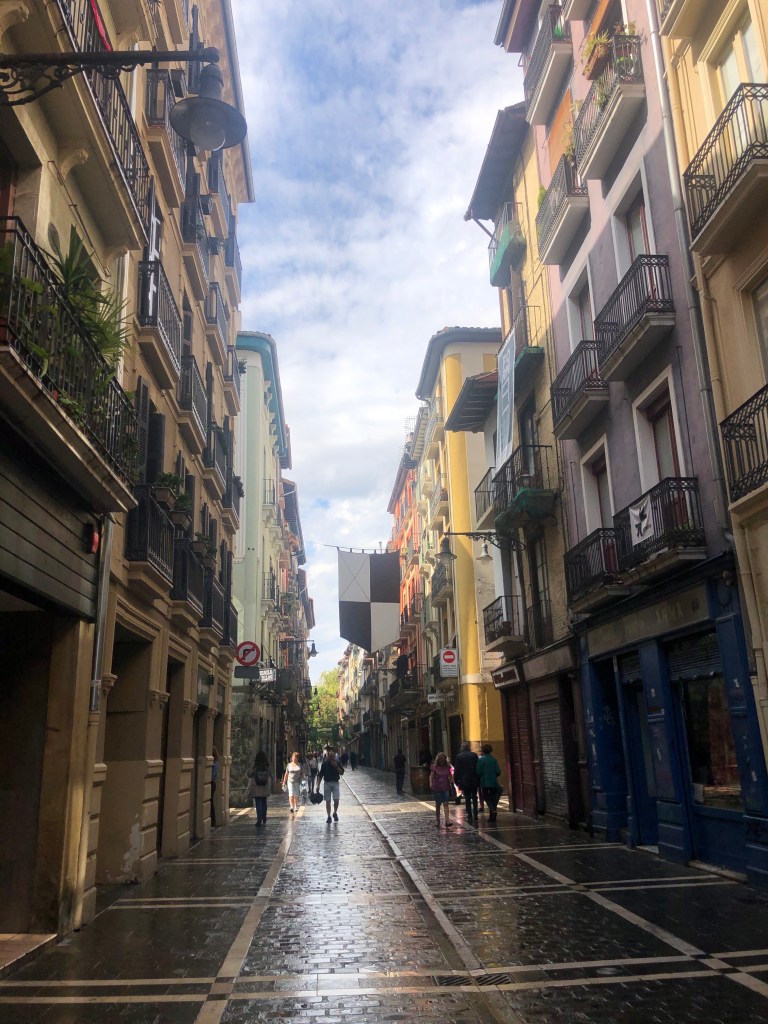 On Monday we left the campsite at 09.20 to make our way to Pamplona via a supermarket shop as we didn’t have much food in the van. It wasn’t so much that we were concerned about being searched in Bilboa, post Brexit, but more that we knew we would eat out the first few days in Spain. We parked up in a designated motorhome car park just outside Pamplona city walls (P4N#287560). Very reasonable at €10 including electricity for 24 hours. We stayed for around 3 hours which was enough time to wander through the old town and see the route of the Pamplona Bull Run to the bullring itself.