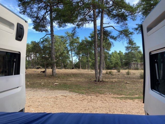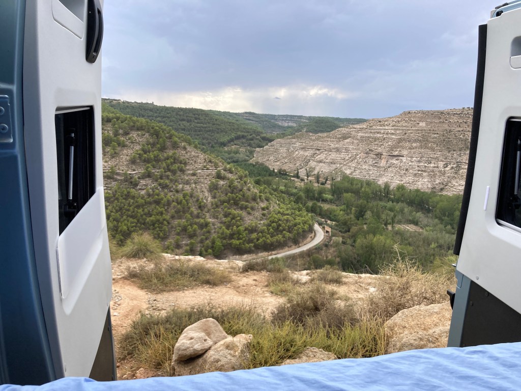 After a late lunch , our next stop and overnight park up was Alcalá del Júcar. We drove up into the mountains again and down narrow roads until we reached the castle standing high above the town at 17.25. There was an overnight car park literally next to it on top of the hill (P4N#147204). The weather wasn’t great but it was still a lovely view. The whole town and castle had been built into the rock face and even featured rock houses. A wonderful evening spent exploring the town coupled with a great meal down in town at Fogones el Chato.