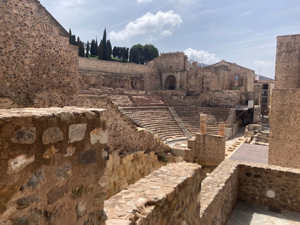 We left around 11.00 and gave Antonio a lift back to Alicante before heading off to Cartagena. We arrived around 13.30 and found a spot to park near the local hospital (P4N#308738). Again, a short walk into the old town. The Roman theatre was shut for lunch but we still managed to see inside and then walked up to the castle although the views across the city weren’t very interesting. Our walk back to Dora was via the Archaeological Park which was more interesting.