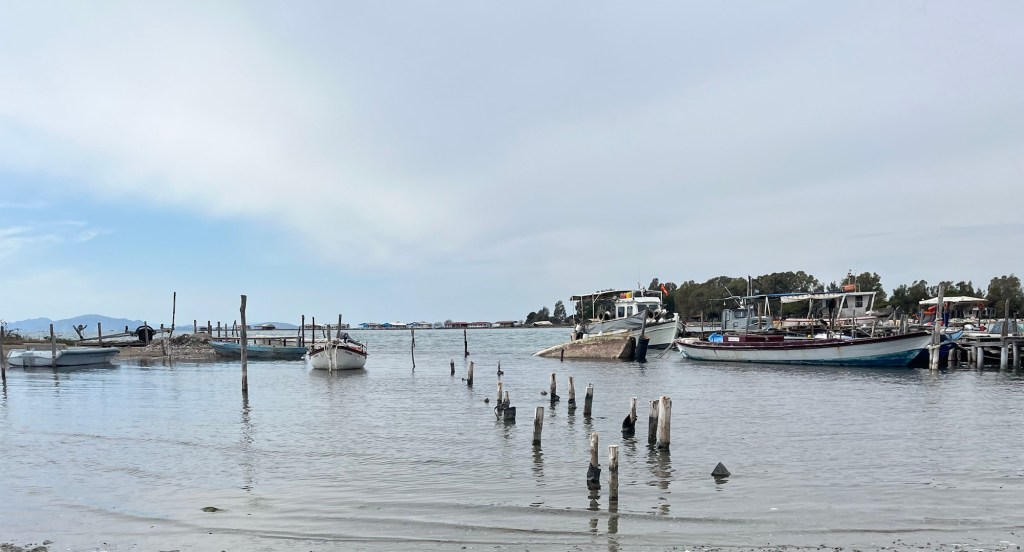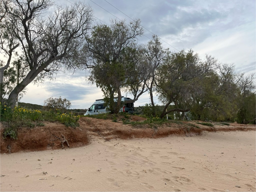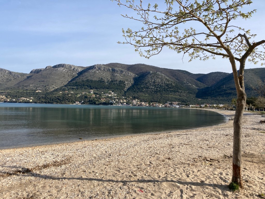 We finally arrived in Lavrion before dark for a change and decided that the overnight stop in town was ok but not exactly pretty so we continued onto a beach we know called Pounta Zeza. There were parking places available as it’s very much out of season. In fact, it was very chilly with a strong NNE wind blowing so apart from one other motorhome and a car with a caravan (but no one apparently in it), we had the place to ourselves. The beach is only a stone’s throw from the boatyard and will be lovely to wake up looking out on the pretty bay. It’s not on any app as a park up so we were surprised anyone else was there. After a brief walk along the beach we retired back to Dora for dinner and an early night.
