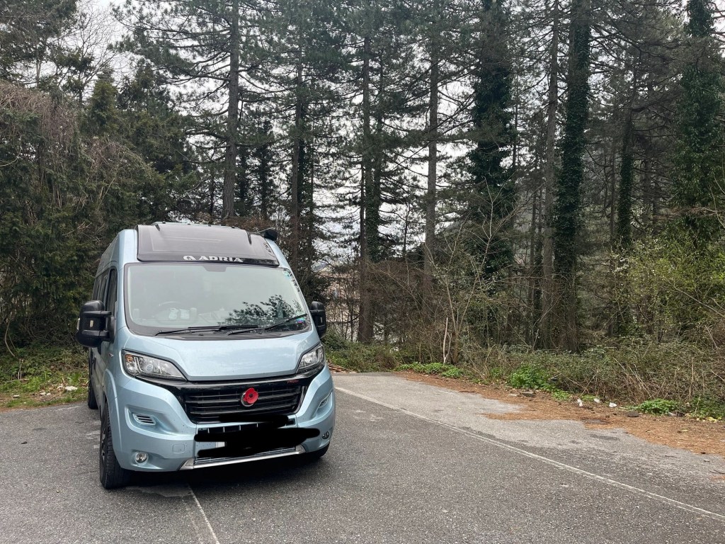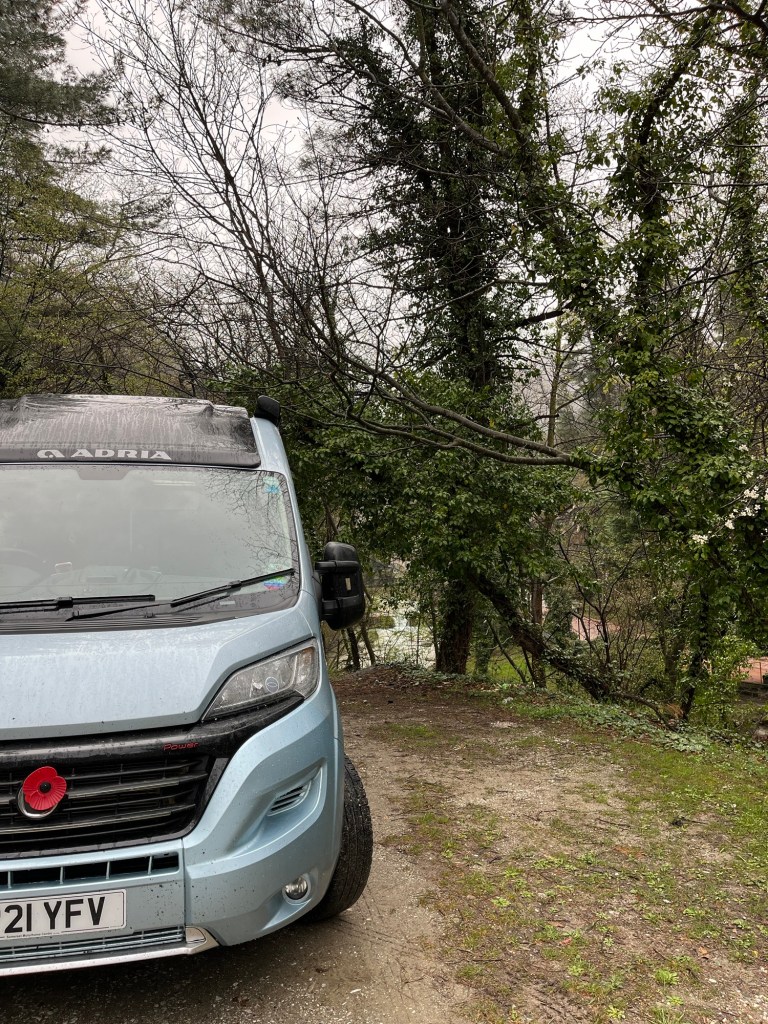By lunchtime on Monday, we were all done and sadly said farewell to our beloved boat. We then made our way north towards Mount Olympus in northern Greece. It was a gloriously sunny day and the snow capped peaks of Olympus looked wonderful as we headed towards them. Our park up for the night was the old monastery of Saint Dionysios (P4N#105922). We noticed the temperature cooling as we headed north and as we climbed up the mountain the temperature started to drop even more. By the time we parked up it was only 6°C and not even dark so we were slightly worried the temperature would drop even further overnight. We popped the heating on low just in case as we didn’t want the frost valve to open and dump all our water!