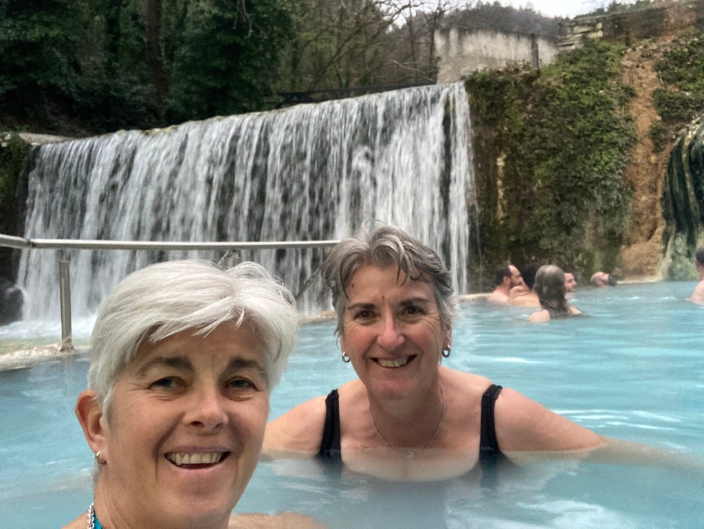 We were then going to visit Dion, where the ancient gods were worshipped, and Vergina where the royal tombs of the ancient Macedonians are, including Philip II, father of Alexander the Great. However, the guide books didn’t tell us that all of these sites are closed on a Tuesday! Ah well, we made our way instead towards Pozar Thermal Baths. On the way we stopped at Edessa, which is perched up on an escarpment with supposedly amazing views and waterfalls through the town. Apparently, the Edessa region is responsible for one per cent of the world’s cherry production. To be fair, there were a lot of cherry orchards with lovely blossom on the trees. The place itself was fairly drab but the waterfalls were impressive so worth the detour.
