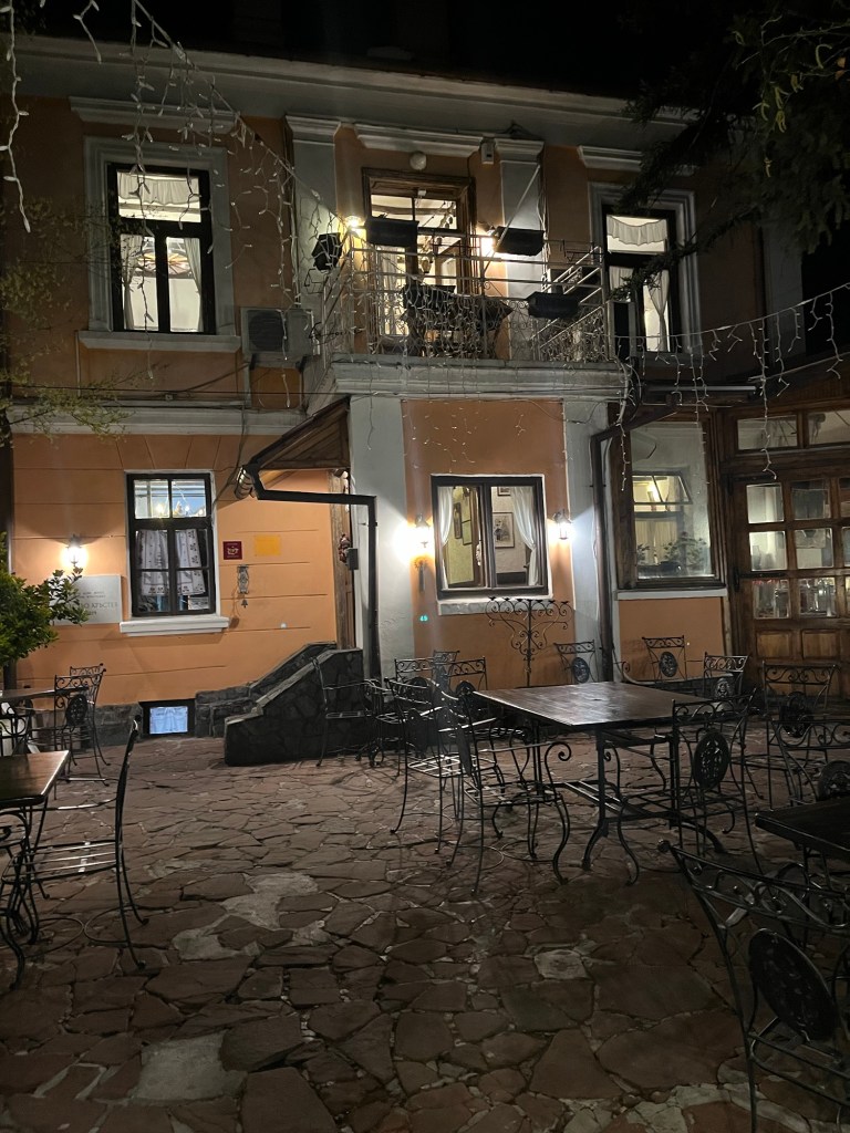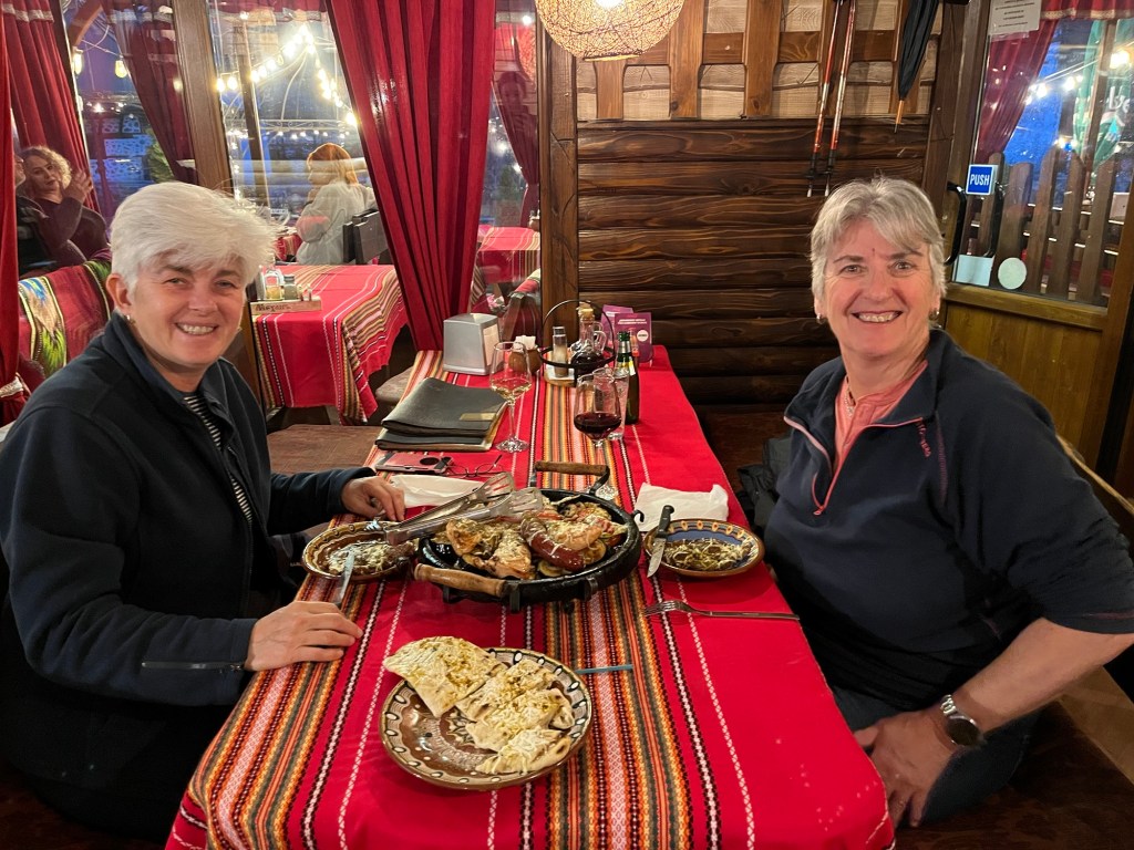 Onto Sofia where we had high hopes of an interesting 36 hours. We had booked a secure campervan park just outside the centre (P4N#291195) and glad we did as I’m not sure we would have been happy to leave Dora unattended whilst we did some sightseeing. We went into the city that evening via the nearby Metro to get our bearings and have something to eat. There was an army band playing in the main square to celebrate 20 years of Bulgaria being part of NATO. A delightful interlude before dinner. We had chosen a restaurant, called Manastirska Magernitsa that specialised in Bulgarian recipes from the 131 active monasteries across the country. That’s a heck of a lot of monks in a population of under 7 million people. The rabbit in white wine and vegetable omelette were both delicious but our choice of wine was not! Back to the van by 22.30 to find that the local kids had started a fire in waste ground next to the campervan park. We were worried that the fire could quickly spread but the fire brigade were there a few minutes later and put the fire out so we could all sleep soundly!