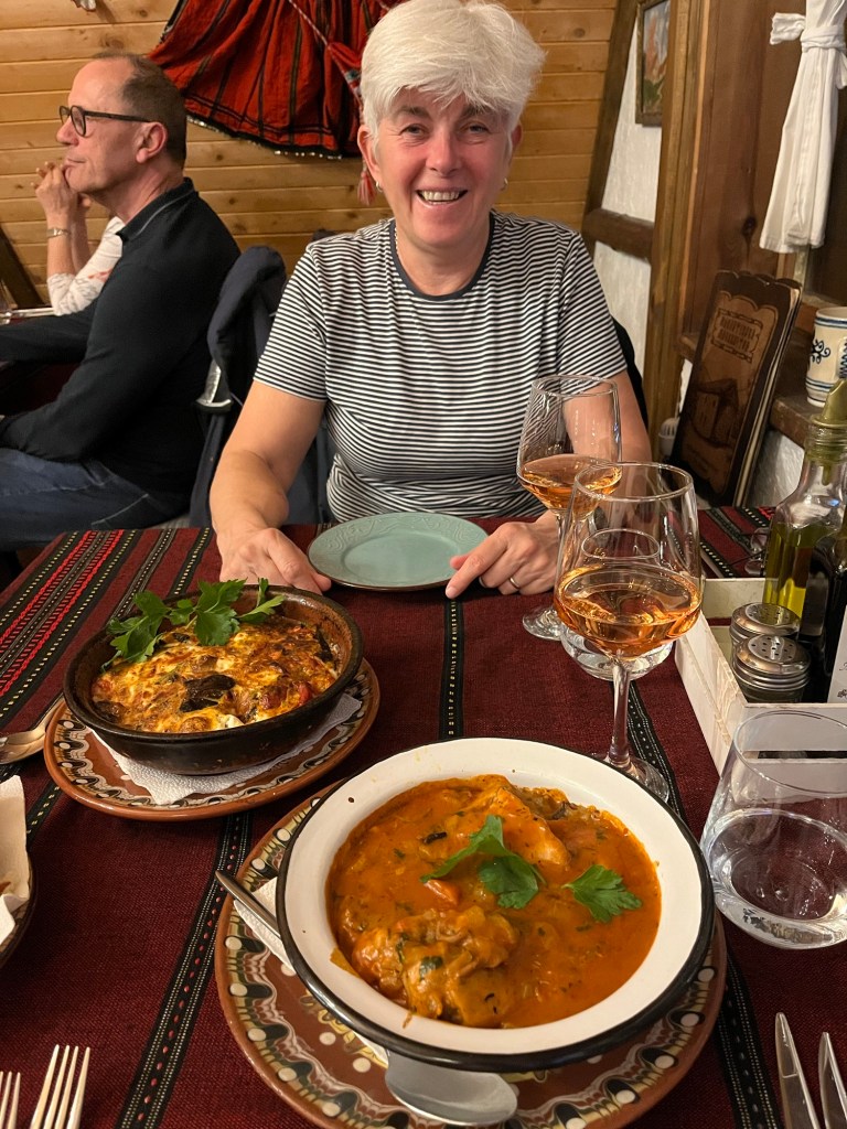 With our passports stamped we headed towards the wine region around Melnik for our overnight stop. The village of Melnik is in a lovely setting of sandstone rock formations and we found a car park (P4N#251024) on the edge of the village. We decided to treat ourselves and eat out (something we hadn’t done since Modena, Italy well over a week ago). We found a lovely little taverna called Bistro Melnik that served Bulgarian specialities like Sach (a meat stew) and also the local wine. All very pleasant and not expensive at all.