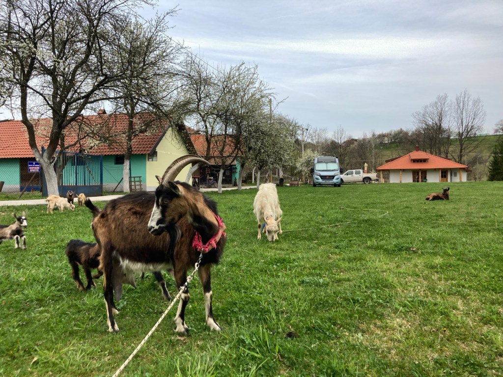 We then decided to make our way towards the Tara National Park which is in the NW corner of the country right next to the border with Bosnia-Herzegovina. It was a long drive only part of which was motorway and the rest more like A or B roads. It was already dusk when we arrived at the first of our potential park ups but although it was set in a gorgeous gorge it was basically a car park next to a busy main road. We couldn’t find the second potential stop in the dark so we continued onto a campsite we had contacted. There would be someone there until 21.00 so all good. The roads got smaller and we climbed higher and higher. At last we saw a camping site sign. With a huge sigh of relief we had arrived. Strangely though it seemed to be more of a farm than a campsite and there was no one to greet us. The owners came out and it turns out we had set the sat nav to the wrong campsite! However, this was a delightful, family run place with goats, donkeys and even peacocks. They couldn’t have been more welcoming with homemade plum brandy, coffee and cake. A wonderful find although they also told us that as we were only staying one night it wasn’t worth registering us with the police either! (P4N#67972)