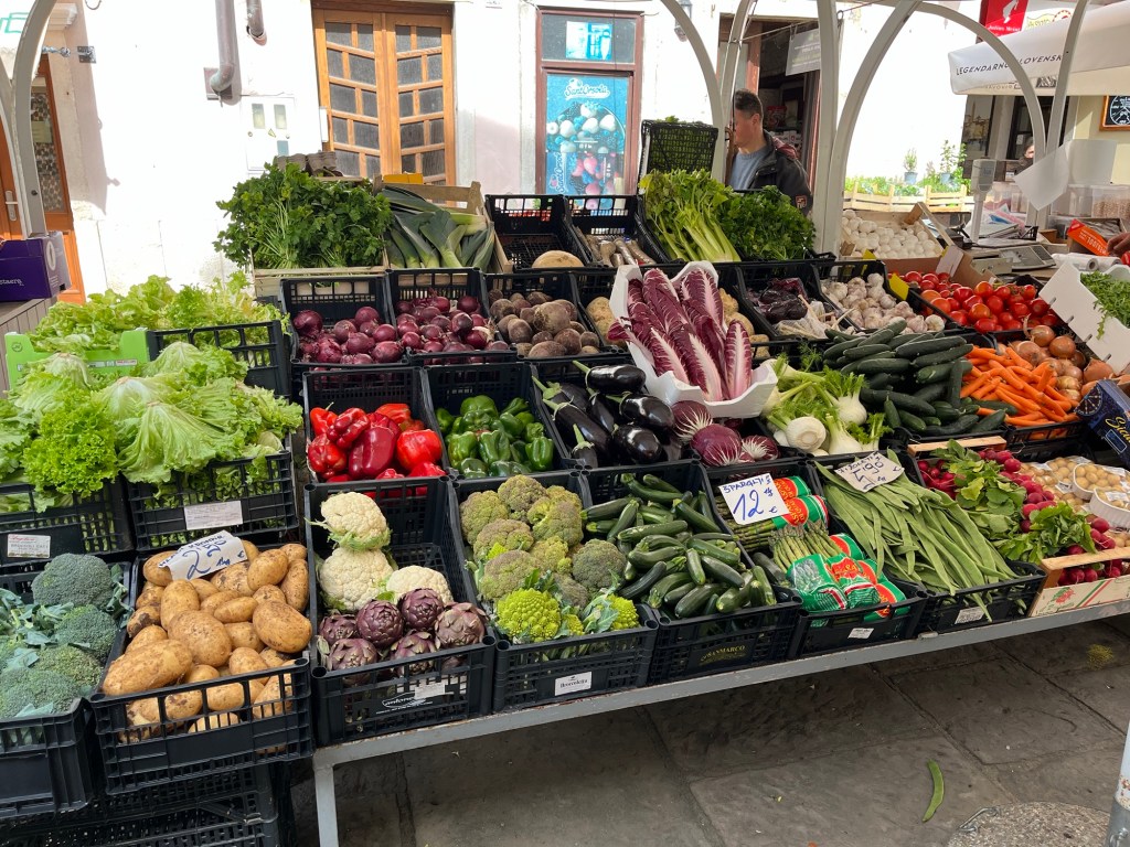 We sorted ourselves out quickly as we wanted to walk into town along the coastal path about a mile or so away whilst it was still light. One of the main monuments in Piran is the Bell Tower of the Cathedral of St George but sadly it was covered in scaffolding (there seems to be a theme for our trip!). We wandered around the back alleyways and ended up at a bar overlooking the Adriatic. We hadn’t been back to this part of the Med for about 7 years so it was lovely to look across to Croatia and reminisce.