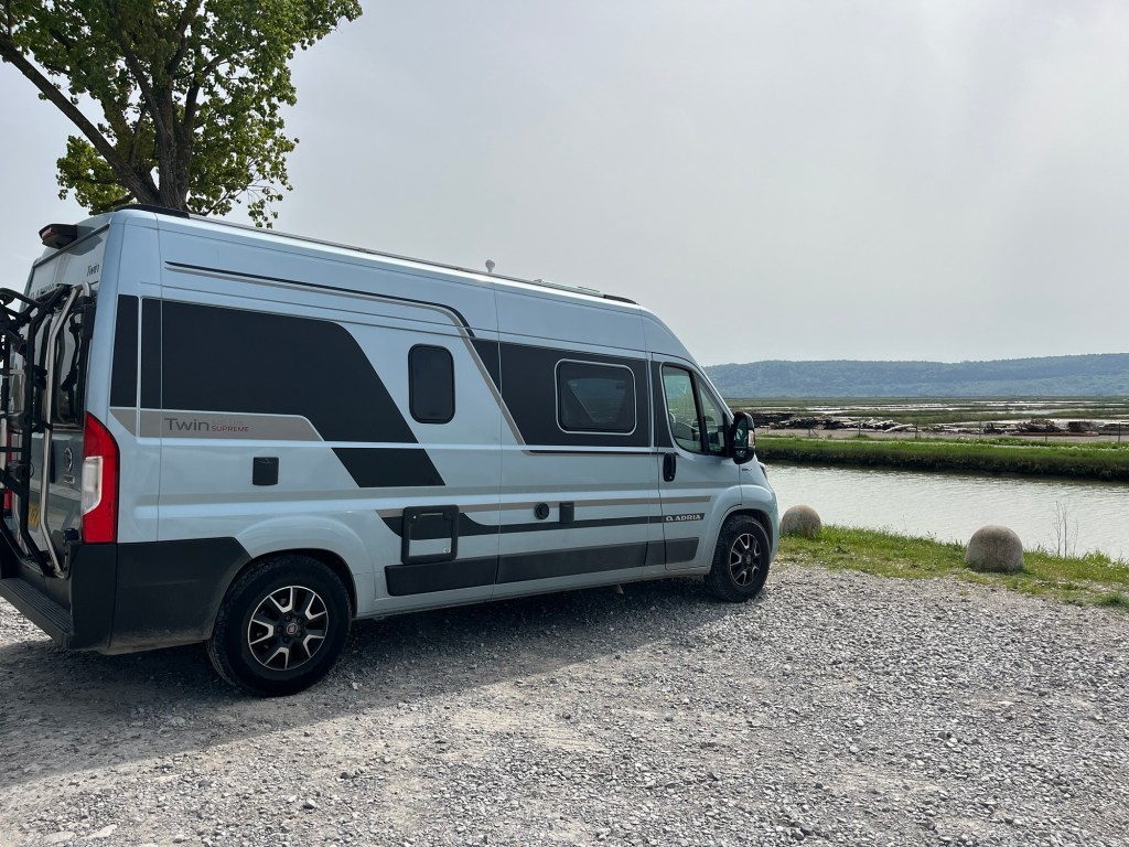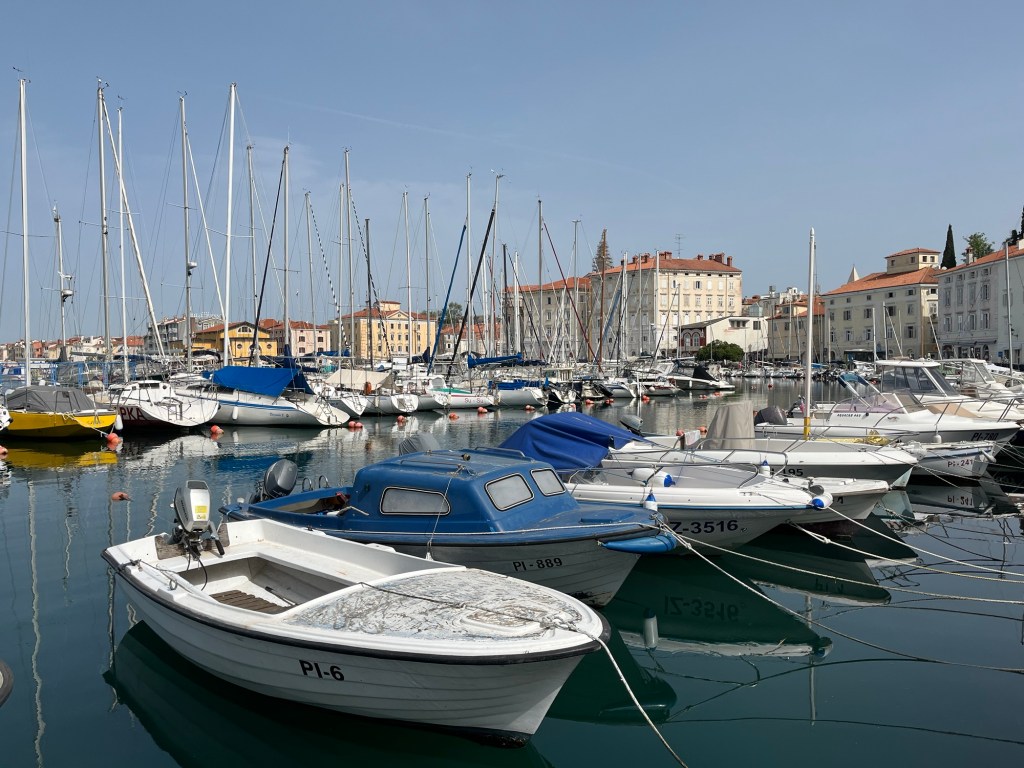 After finishing Predjama Castle on Monday, April 8th and getting the shuttle bus back to the car park, we left our parking spot at 15.30 and continued down to Piran on the west coast of Slovenia. This whole area used to be part of the Austro-Hungarian empire until the end of the First World War when it was given to Italy. It is also the only part of Slovenia that has a coastline. The park up was in a field (P4N#346834) with electricity, next to the beach with the rest of the facilities in the adjacent campsite, Camp Fiesa. It was a tad expensive at €38 per night (including tourist tax) but there were very few options available and we had been told that Piran had some fine Venetian architecture. It also had boats so that was a draw too!