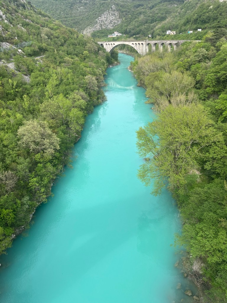 After that brief stop, we made our way up to the NW of the country and the Soča River Valley. We had intended to stop at the Solkan Bridge for the night (P4N#177464). It was a lovely spot but it was also by a busy road and a railway line so we decided to see if we could find a better alternative, figuring that there would be space later once the hikers had gone home if we changed our minds.
