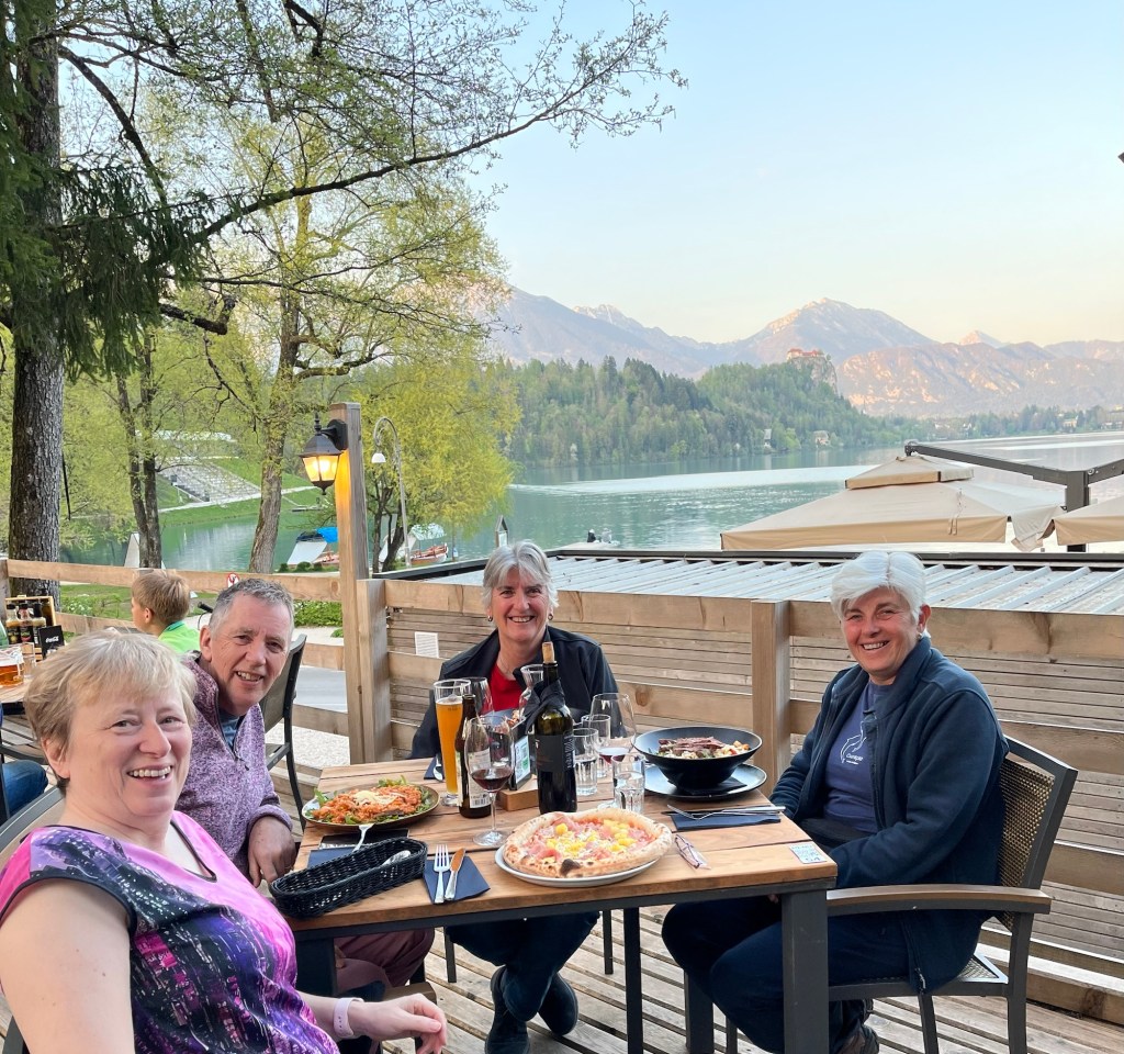 Wendy and Liz got up very early to see the sunrise across the lake. Stuart and I stayed in our respective beds but they did see a spectacular sunrise. We have absolutely loved Slovenia and can’t believe that the last ten days in this wonderful country have gone so fast.