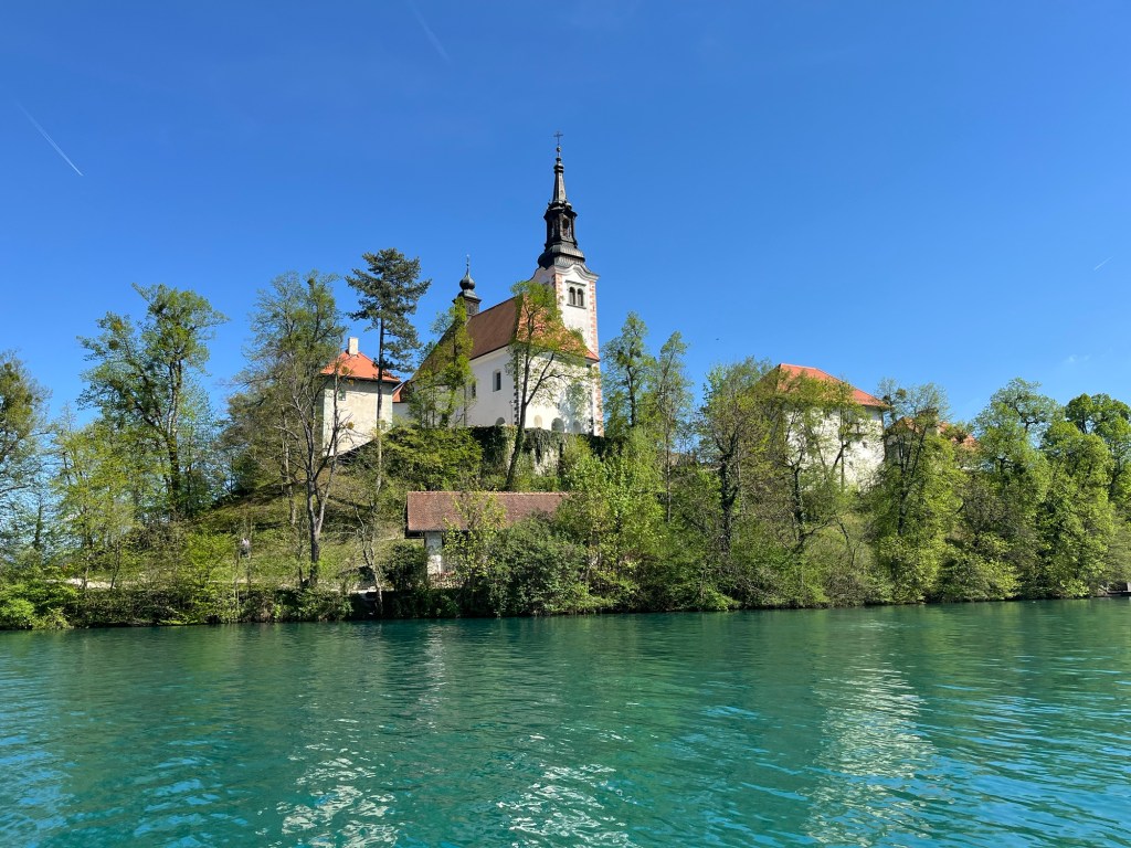 In the afternoon, we hired a pletna, flat bottomed boat to take us to the church on the island in the middle of the lake. You only get 45 minutes on the island which is more than long enough to eat an ice cream. The right to use these boats dated back to 1740 when Empress Maria Theresa gave the farmers with poorly cultivated land permission to supplement their living. The Empress was instrumental in reforming serfdom across the Hapsburg Empire so they had their own land to farm.
