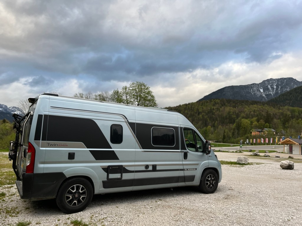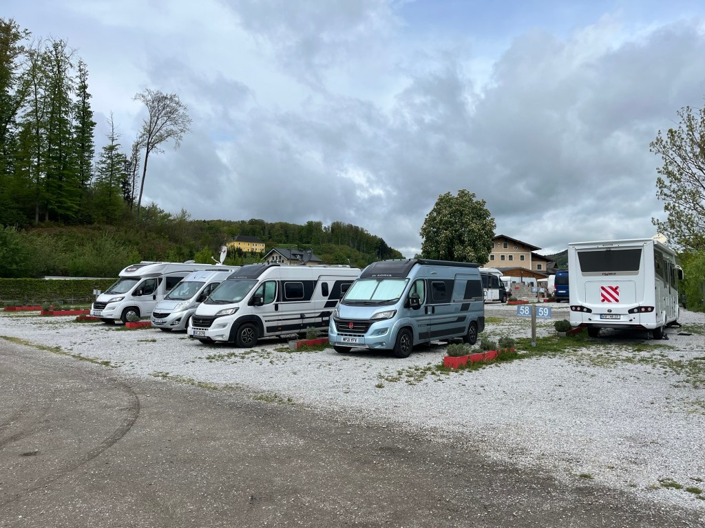 Once in Austria, the temperature plummeted from the 26°C we had in Slovenia to around 5° with rain and hail. We made our way towards Salzburg and had found a Stellplatz (motorhome car park basically) just outside. It was expensive for €30 per night but there were few other options especially if we wanted to leave Dora to go into the city but it did have all the facilities we needed including hot showers (P4N#69353).