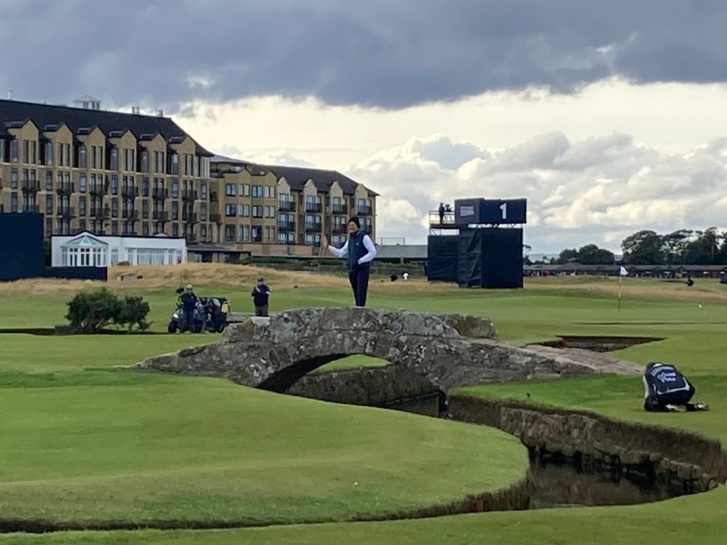 Although we had tickets for the whole tournament, the others didn’t so on Thursday, Jane and Maria went off to see the local sights and James, Helen and Liz cycled into town to explore St Andrews, including where Kate and Will studied and stayed. It was also an excuse to do some window shopping followed by lunch! Jo rested her leg and watched the golf in Dora.