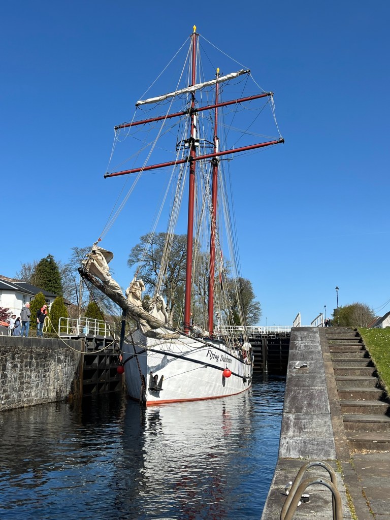 From Glenfinnan we drove by various lochs to Loch Eilt to visit Dumbledore’s grave. From there we made our way back towards Fort William to see Neptune’s Staircase, a series of eight locks that link the Caledonian Canal to the open water over a quarter of mile. An amazing feat of engineering and we were lucky enough to watch an old fashioned, square rigged sailing ship go through.
