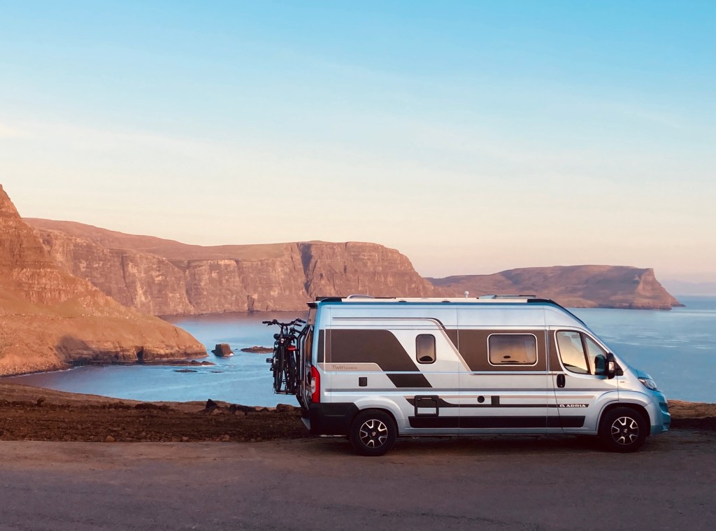 Finally we were over the bridge and on the Isle of Skye. Our stopover was in the far NW corner by the Neist Point Lighthouse (P4N#32148) as it was going to be a glorious evening and this was the place to see the sunset. What we hadn’t quite realised was that the drive there was 50 odd miles from the bridge but would take over 1.5 hours! The last hour was on single track roads with many pot holes. However, we were on a mission. We got there and nabbed one of the last places that we could fit in at around 18.30 ready for a glorious sunset. We were not disappointed.