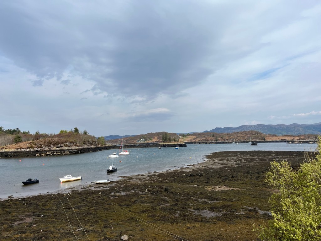 However, before we went into Gairloch, we went over a narrow bridge down another single track road to Badachro that had a distillery (closed on a Saturday) and a pub.