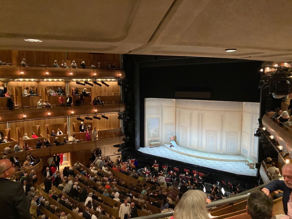 Those familiar with Glyndebourne will know that it’s very civilised and very smart. We were definitely not under dressed but fitted in beautifully with Femi getting a lot of compliments about her very pink suit! When we arrived we were shown to our table by the lake for canapés before the show began at 16.00. It was a glorious setting to have our picnic with a bottle of pink fizz. We even managed a wander around the garden to see the Henry Moore statue, visited the organ and exhibition rooms before taking our seats in the auditorium.
